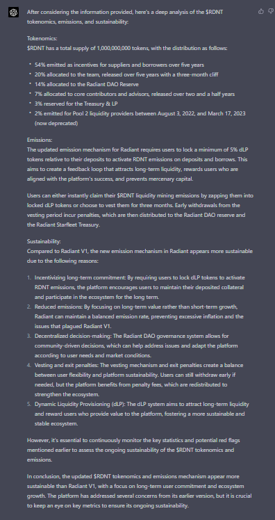 Аналогично Шагу 2, вставьте документы Tokenomics в Chat GPT. В данном случае автор использовал документацию $RDNT.