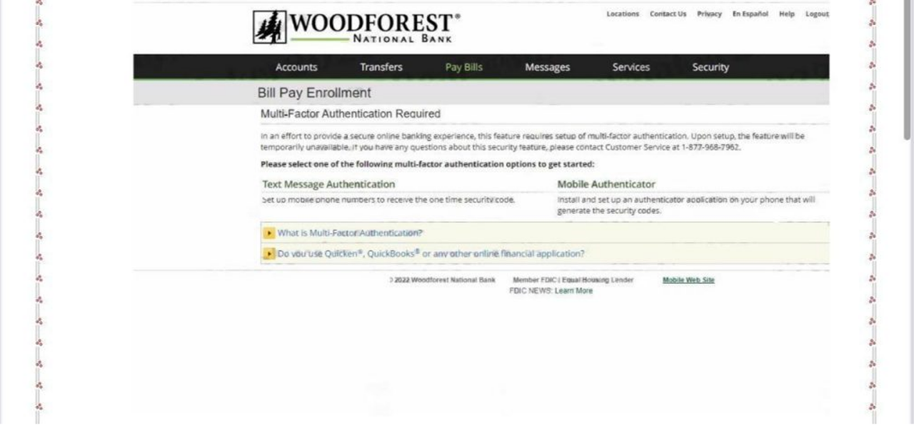 Когда дело доходит до Woodforest, вы должны надеть многофакторный аутентификатор при оплате счетов