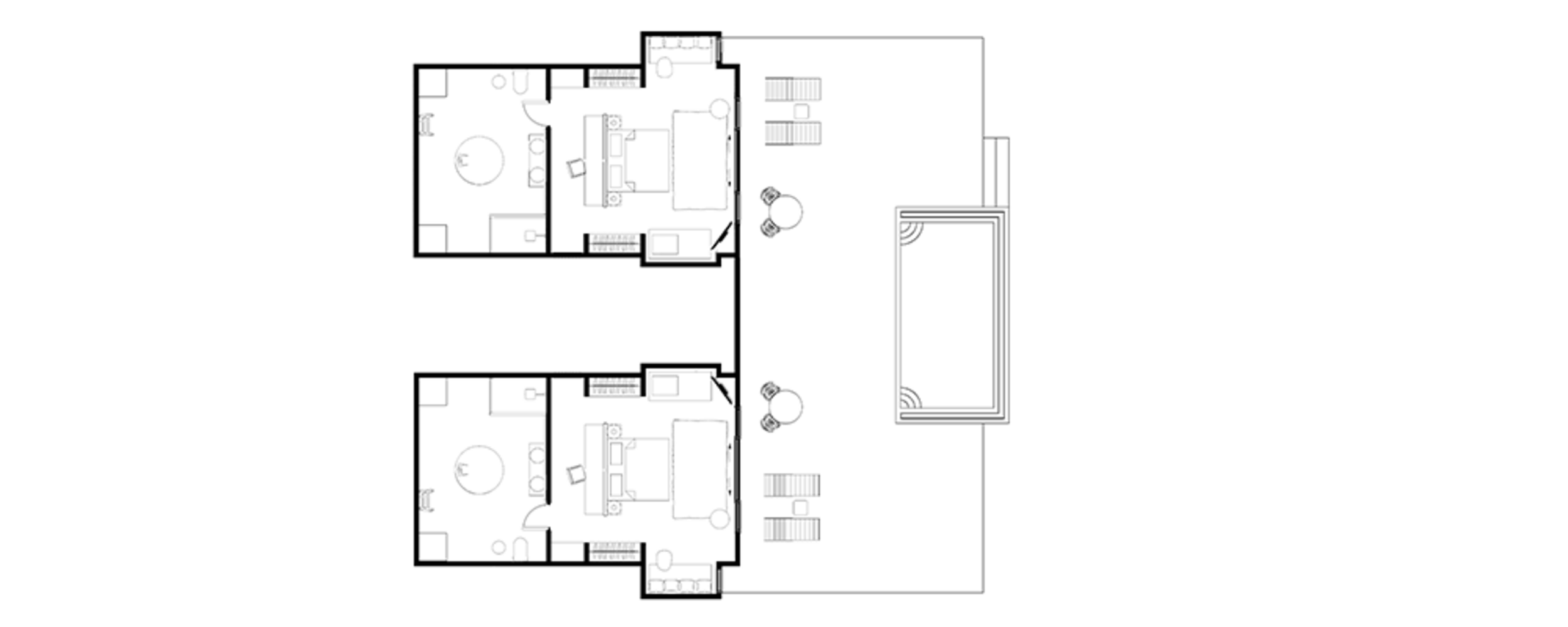 Береговые виллы с бассейном и видом на океан. Состоят из 2 спален с кроватями king size, 2 ванных комнат и объединяющей террасы с бассейном и лежаками. Максимальное размещение - 8 взрослых или 4 взрослых и 4 ребенка.
