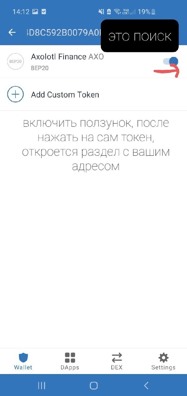 Здесь вы перемещаете ползунок, чтобы он стал активным, после чего нажимаете на сам токен, вас перебросит на ваш кошелек