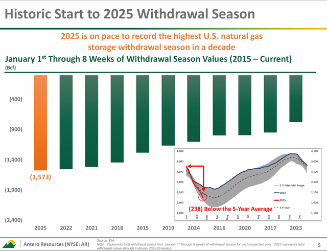 Antero Resources (AR) сообщила об одном из лучших первых кварталов за последние несколько лет. Цены на природный газ были слабыми. Поэтому отрасли нужна была холодная зима. Она получила эту холодную зиму. Теперь у нас еще есть остаток финансового года. Но, по крайней мере, финансовый год начался очень хорошо.