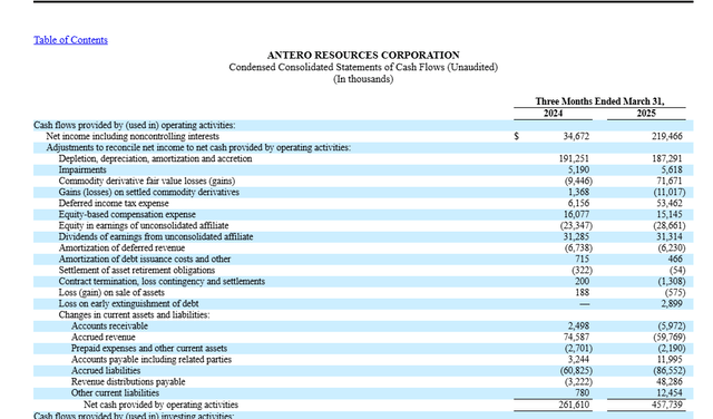 Antero Resources сгенерировала достаточно наличных, чтобы погасить долг и снизить коэффициент задолженности до 1,1 благодаря холодной зиме. Вероятно, наличных будет больше, если цены на природный газ сезонно снизятся (временно, я надеюсь) до начала летнего спроса. Сравнение накопленного дохода, показанное выше с декабря по март, показывает некоторый потенциал даже до учета квартальных продаж.