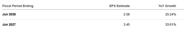 И действительно, аналитики Уолл-стрит ожидают дальнейшего роста этой и без того высокой прибыли на акцию (EPS). Согласно этим прогнозам, форвардный коэффициент P/E на 2026 финансовый год значительно ниже 20, а для компании, готовой осваивать рынок ИИ, такая оценка кажется мне шокирующе низкой.