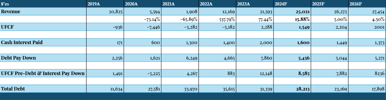 Пандемия COVID-19 опустошила Carnival и привела к убыткам в размере 25,8 млрд в период с 2020 по 2023 год, при этом долг вырос с 11,5 до 35,9 млрд. Чтобы стабилизировать свои финансы, Carnival выпустила существенный капитал, что привело к почти удвоению количества акций. Хотя расходы на задолженность и проценты выросли почти в 10 раз с 2019 года, я считаю, что текущие опасения, что атаки на его баланс будут препятствовать инициативам роста и истощат маржу, преувеличены. Три рычага, включая стратегическое управление долгом, сильный денежный поток и резервы, а также рекордно высокие клиентские депозиты через расширенное окно бронирования, вселяют в меня оптимизм относительно того, что сокращение задолженности более чем достижимо.