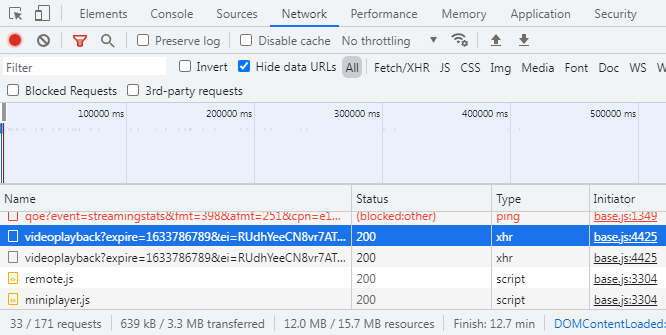 Хорошо, тогда отобразим список всех данных, полученных с серверов Google по нашем запросу видео, для этого выберем фильтр All. Потратив несколько минут путем метода научного "тыка" я нашел подходящие записи, где звуковая дорожка и видео хранятся по отдельности.