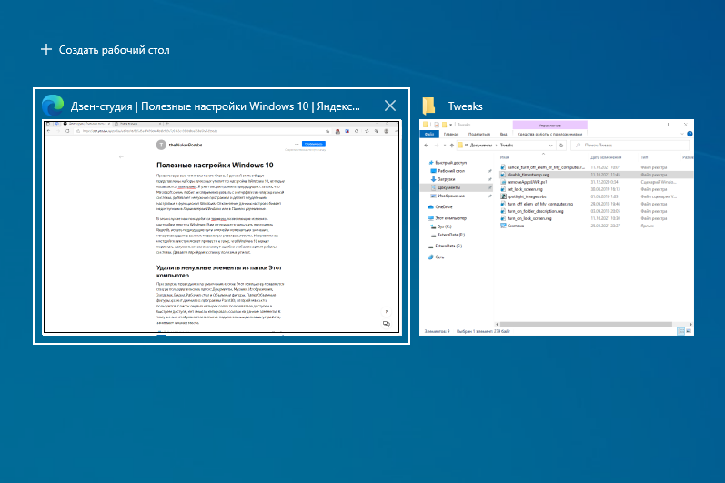 После релиза Windows 10 была добавлена функция отображения рабочих столов под названием Представление задач. На каждом рабочем столе можно размещать любое количество запущенных окон приложений, сортировать их в зависимости от выполняемых задач.