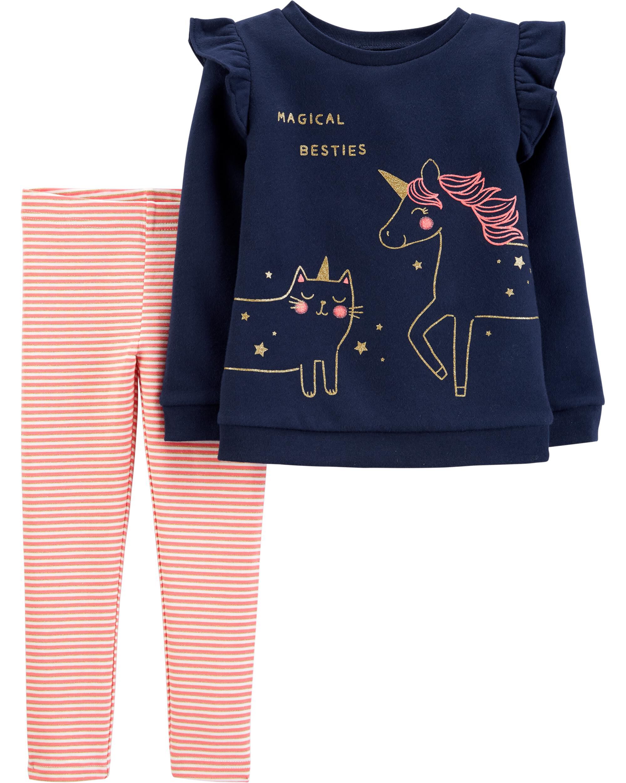 $7.59 фришип $35+ *CLEARANCE* 2-Piece Unicorn Fleece Top & Striped Legging Set