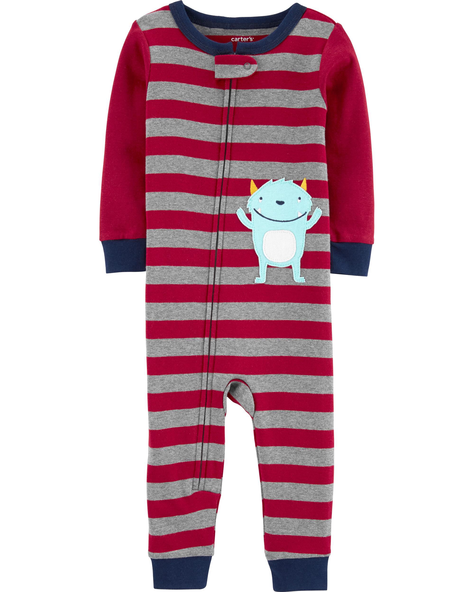 $7.99 фришип $35+ *CLEARANCE* 1-Piece Monster Snug Fit Cotton Footless PJs