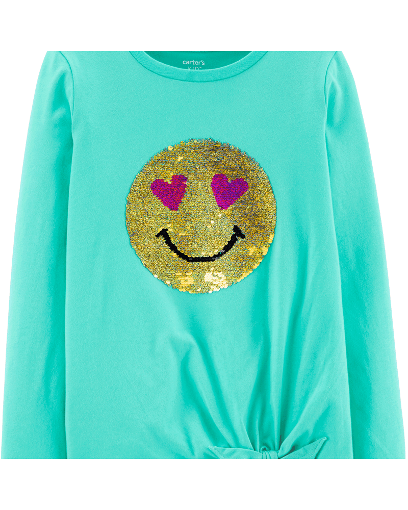 $11.99 фришип $35+ *CLEARANCE* Flip Sequin Smiley Face Tie-Front Jersey Tee