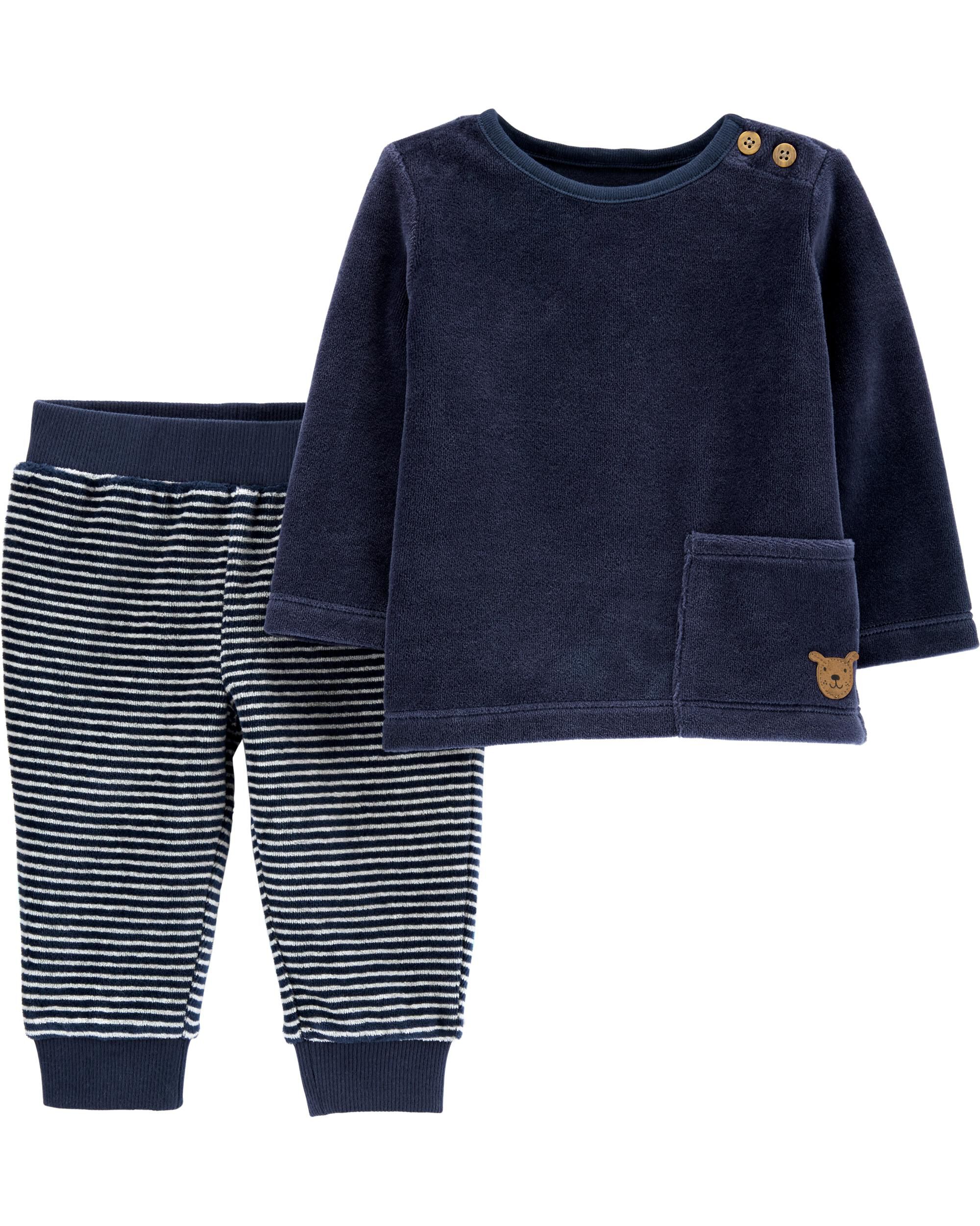 $7.79 фришип $35+ *CLEARANCE* 2-Piece Velour Top & Striped Pant Set