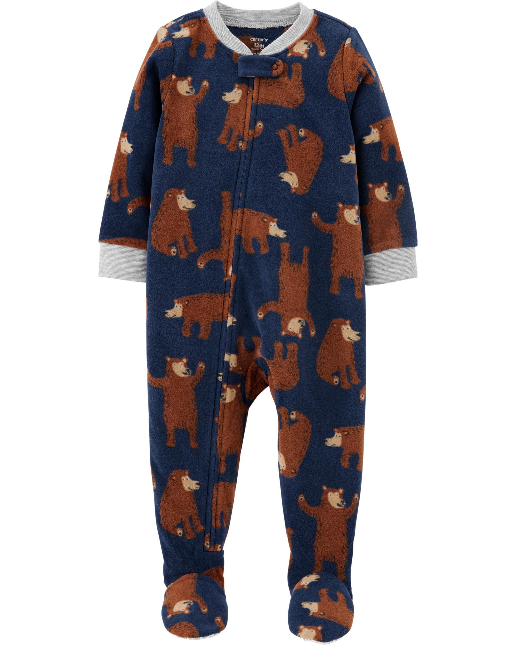 $7.99 фришип $35+ *CLEARANCE* 1-Piece Bear Fleece Footie PJs