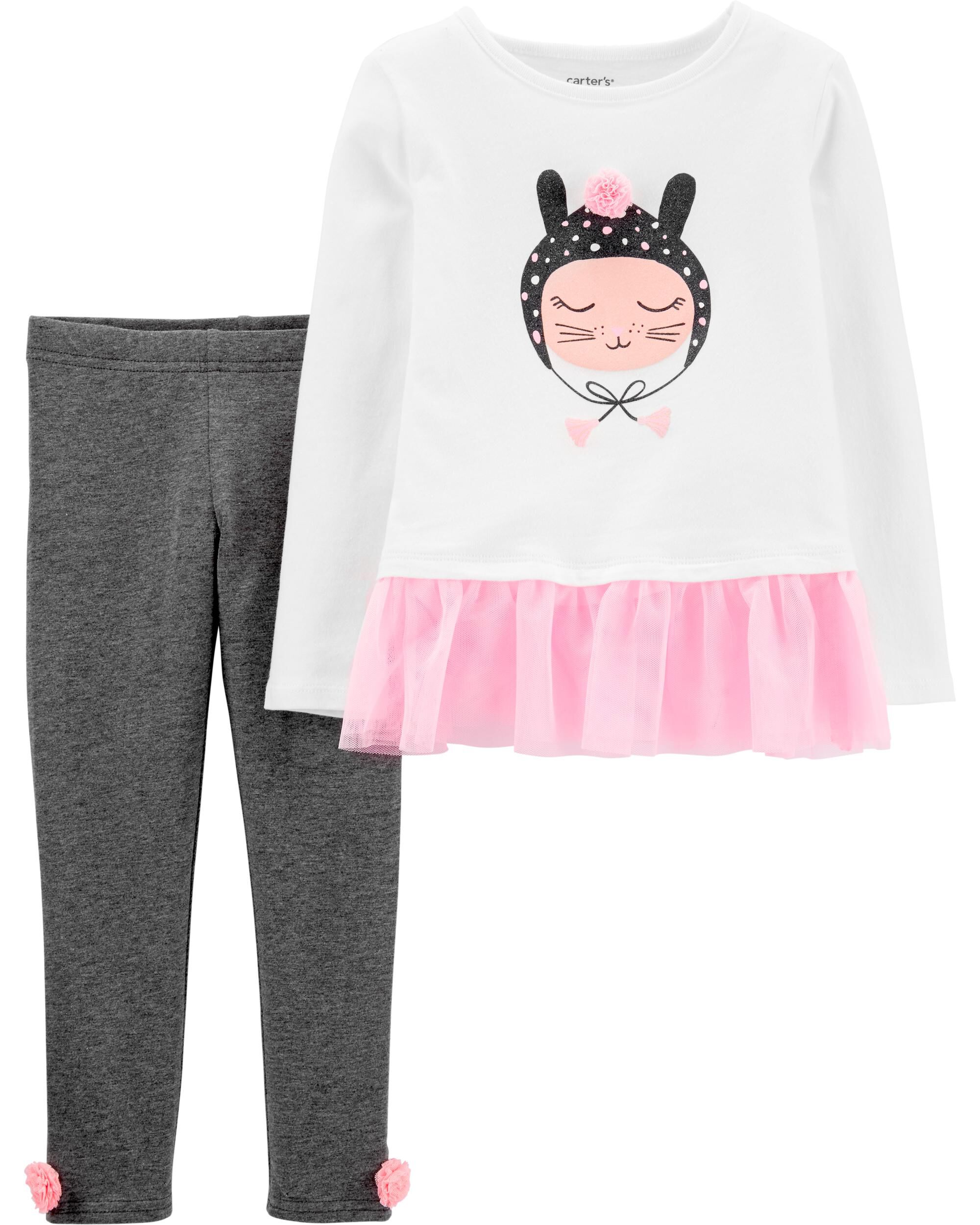 $5.39 фришип $35+ *CLEARANCE* 2-Piece Cat Peplum Top & Legging Set