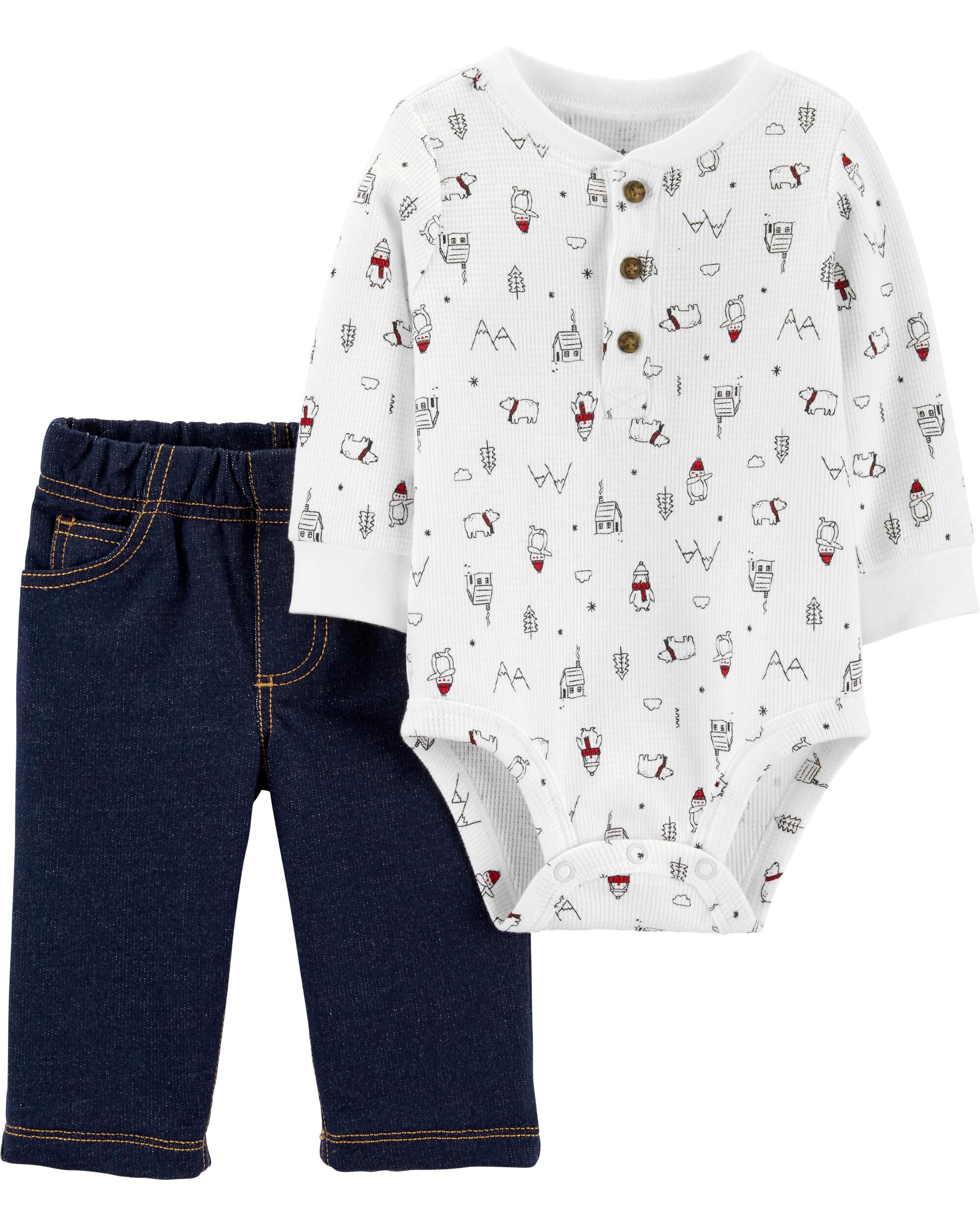 $6.39 фришип $35+ *CLEARANCE* 2-Piece Winter Henley Bodysuit Pant Set