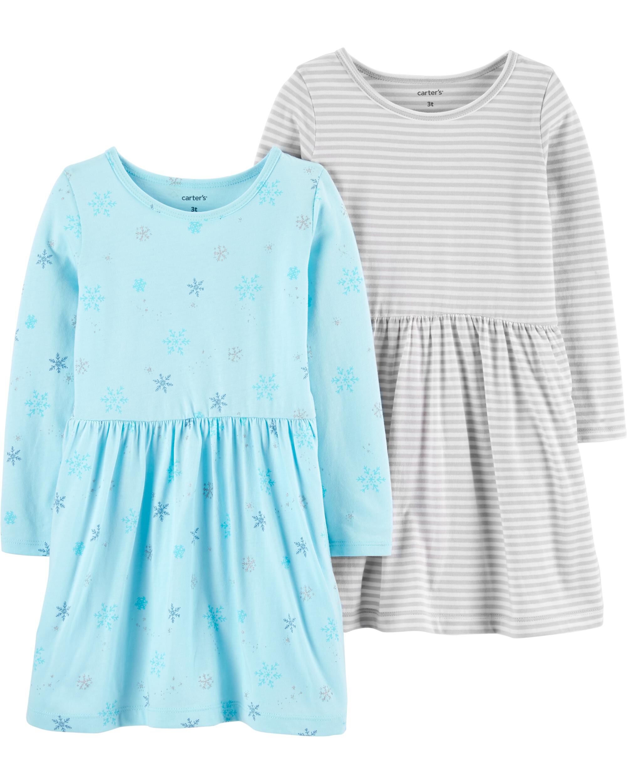 $5.69 фришип $35+ *CLEARANCE* 2-Pack Snowflake & Striped Jersey Dress Set
