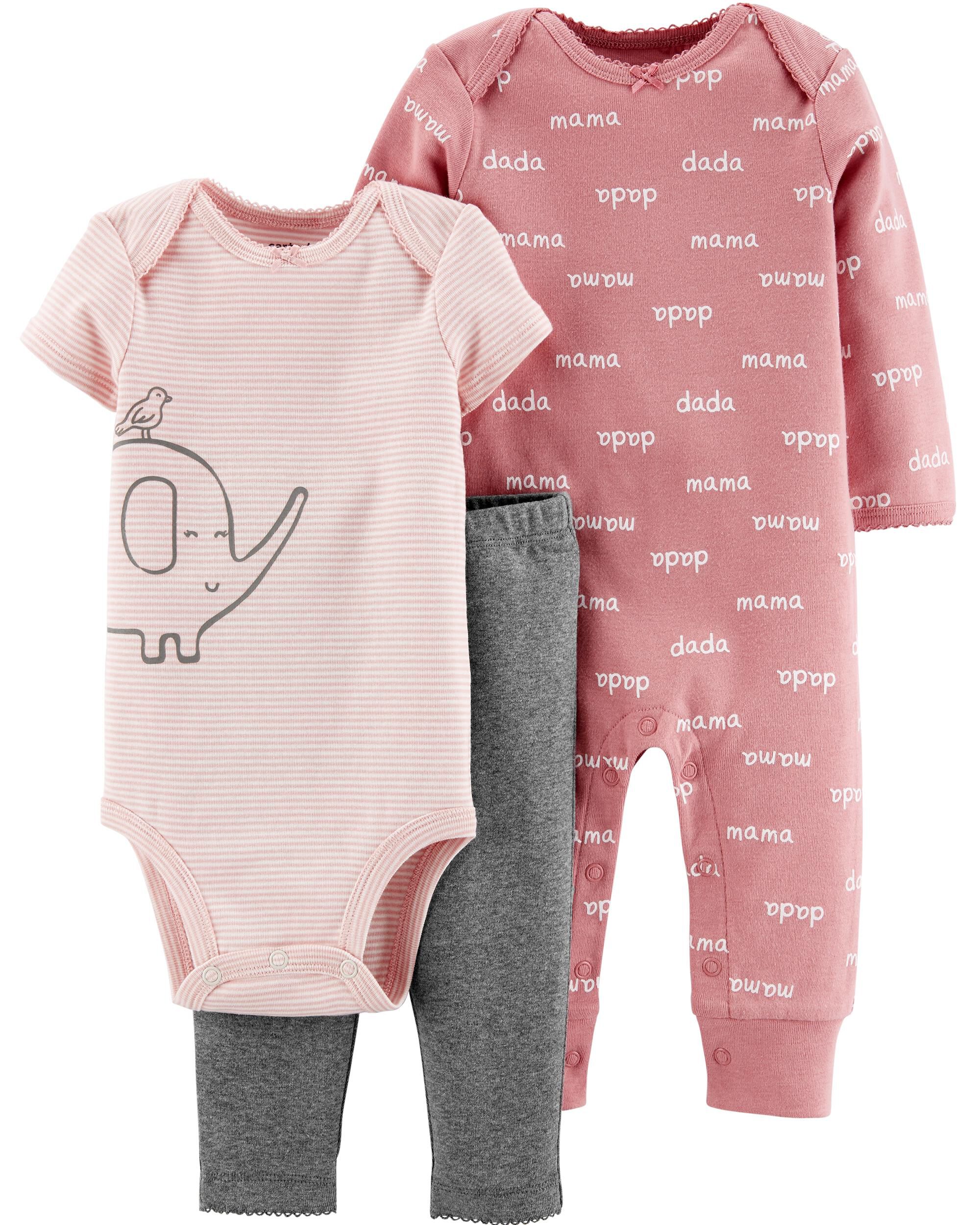 $7.79 фришип $35+ *CLEARANCE* 3-Piece Elephant Jumpsuit & Bodysuit Set