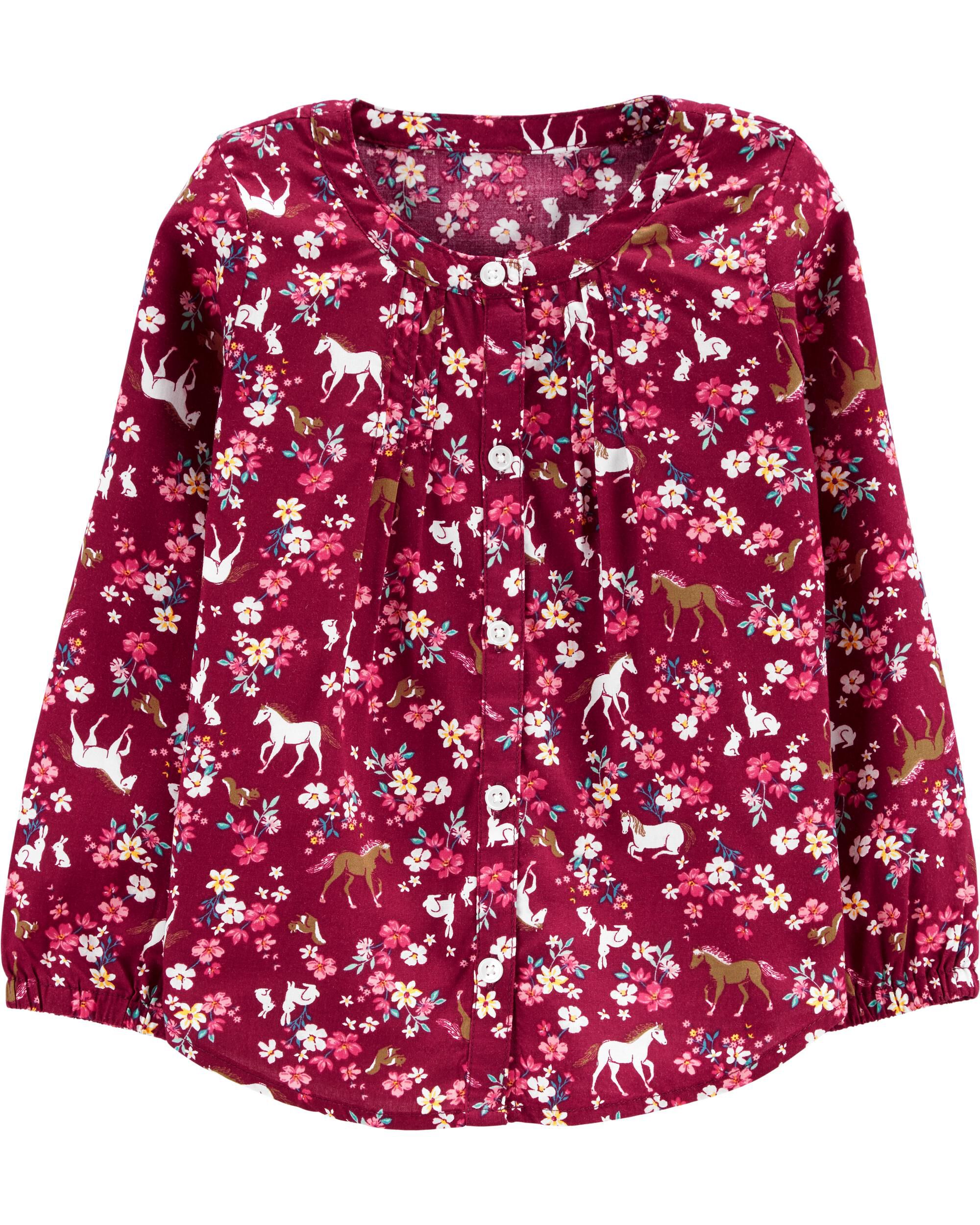$8.09 фришип $35+ *CLEARANCE* Floral Horse Poplin Top