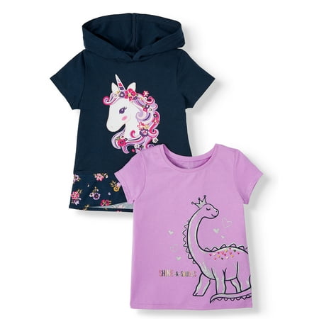 $4.0 = 98 грн. Garanimals Short Sleeve Graphic Hoodie & Graphic T Shirt, 2pc Set (Toddler Girls)