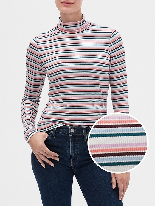 Stripe Ribbed Turtleneck Top