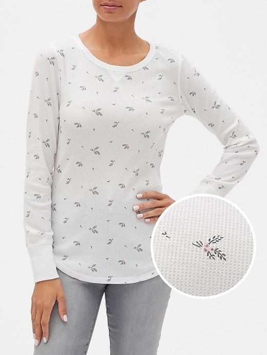 Print Long Sleeve Waffle T-Shirt