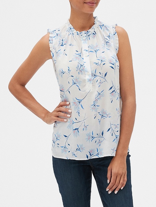 Print Ruffle Split-Neck Top