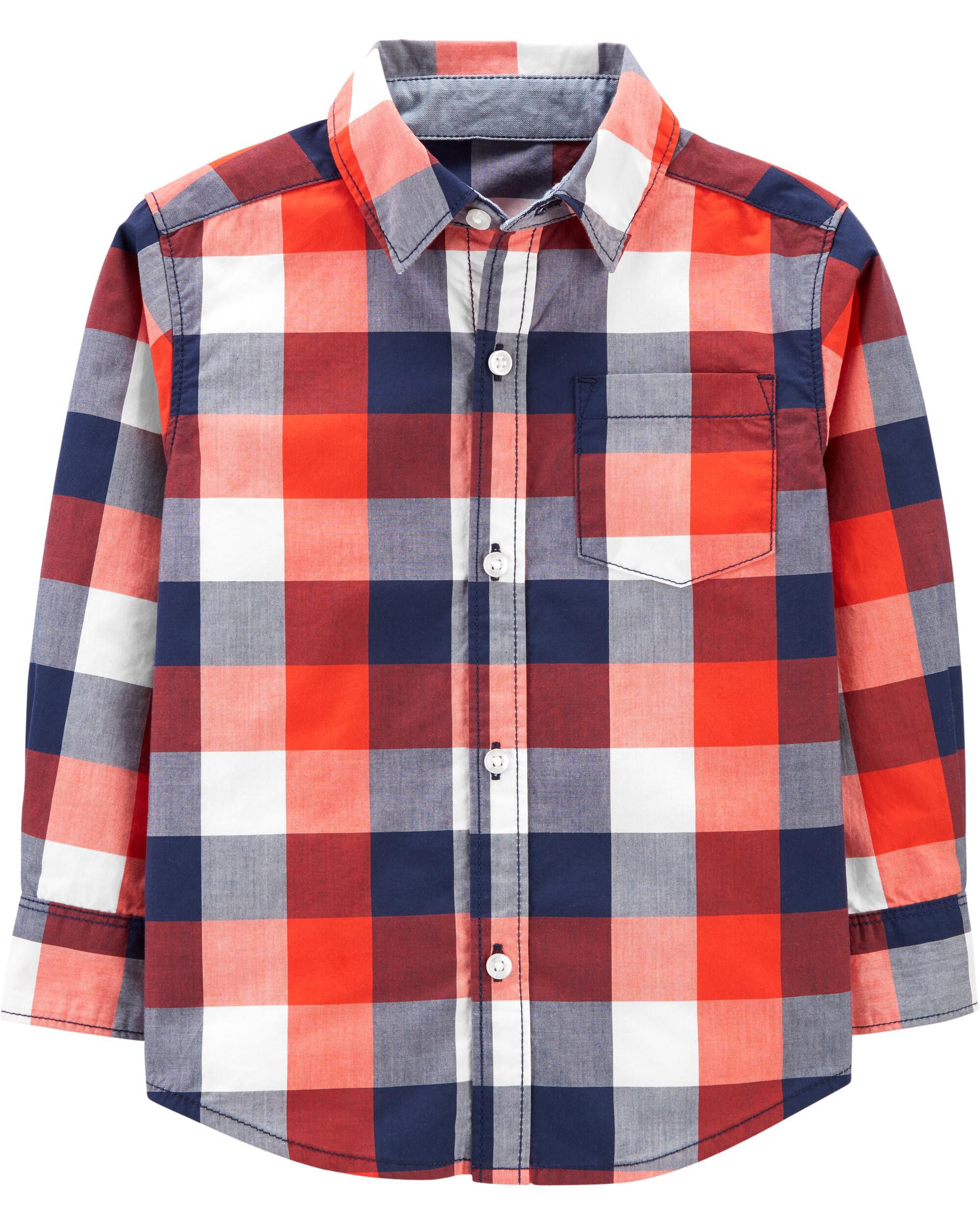 $7.99 фришип $35+ *CLEARANCE* Plaid Poplin Button-Front Shirt