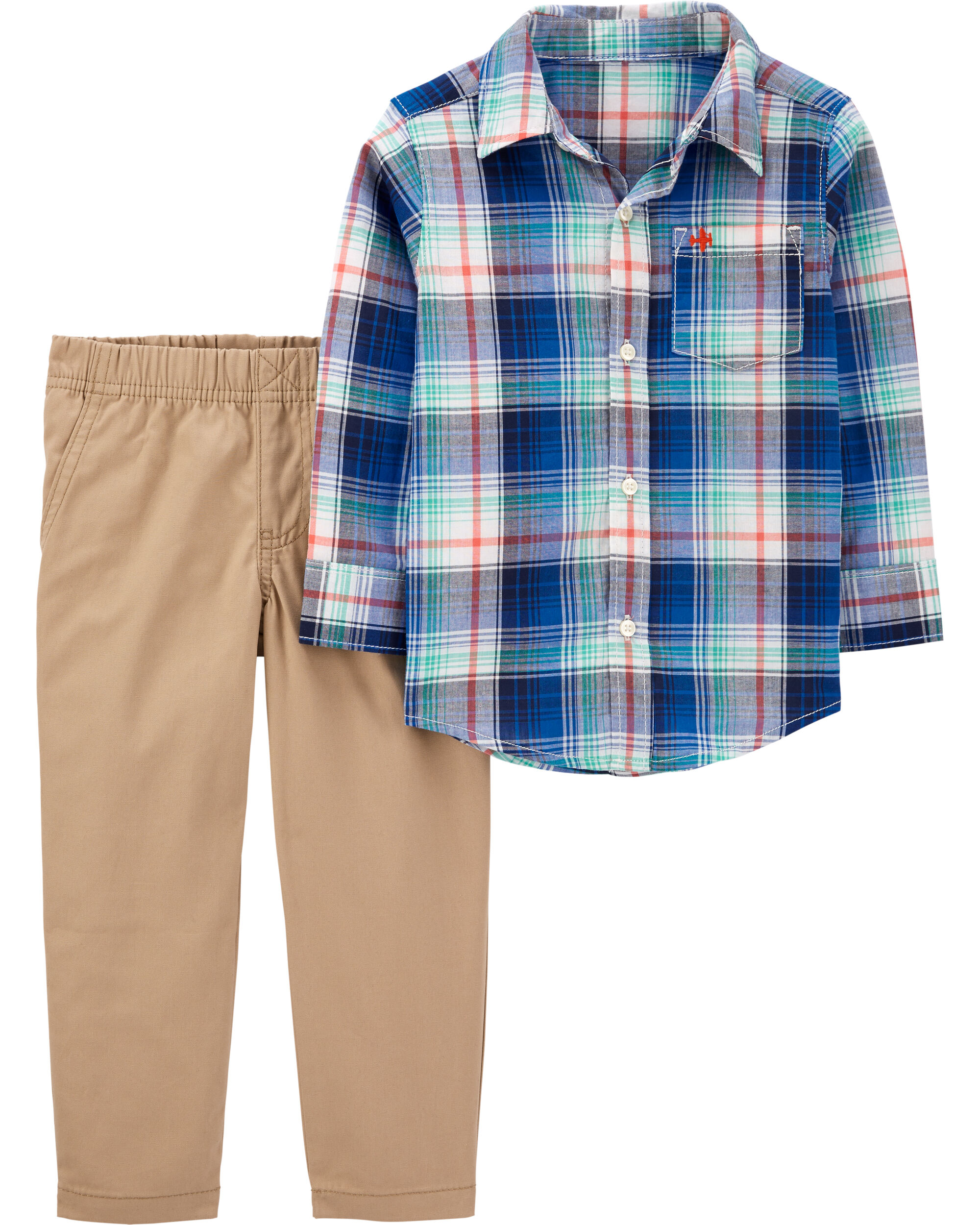 $10.00 фришип $35+ *DOORBUSTER* 2-Piece Plaid Button-Front Top & Canvas Pant Set
