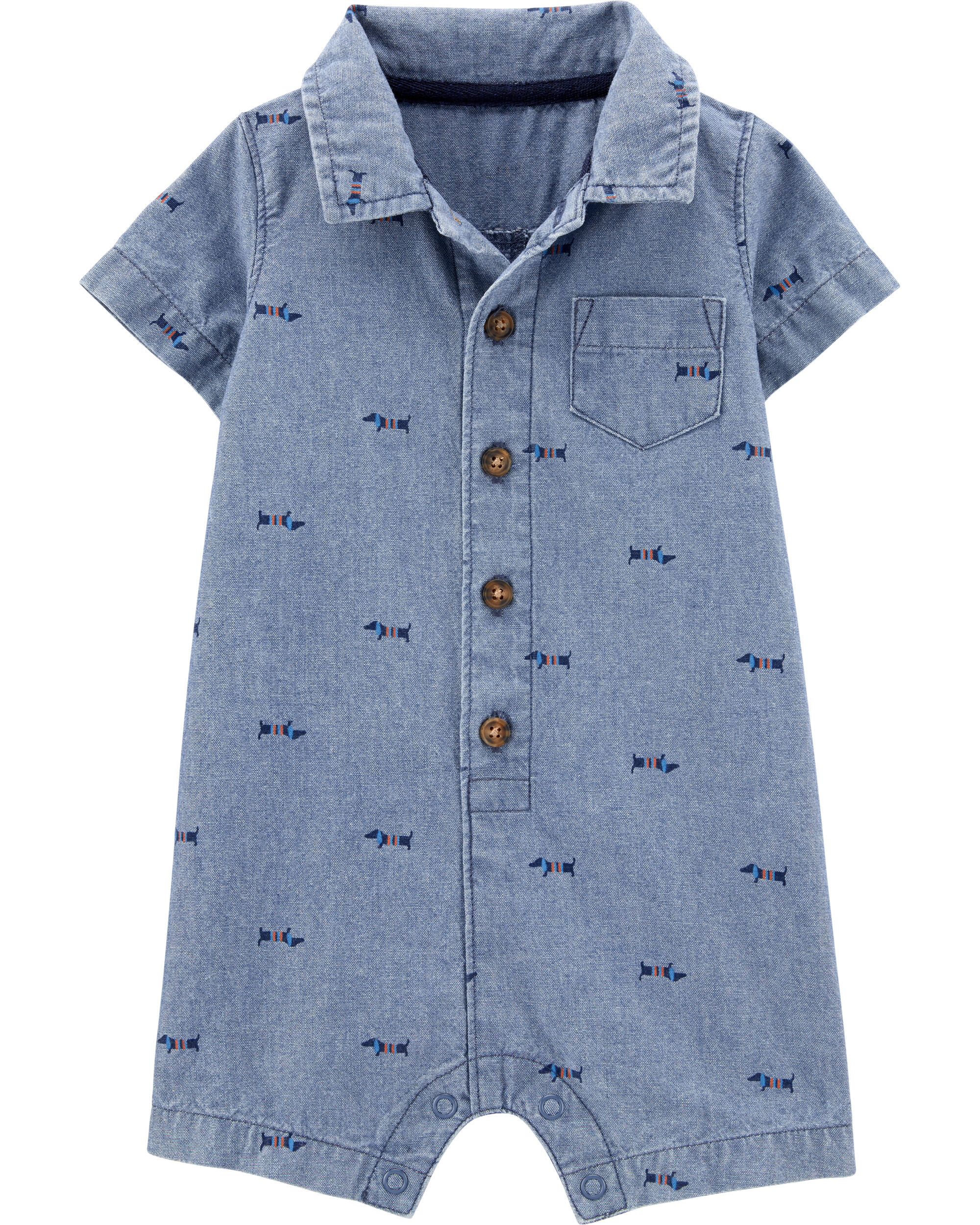 $9.00 фришип $35+ *DOORBUSTER* Dog Chambray Romper
