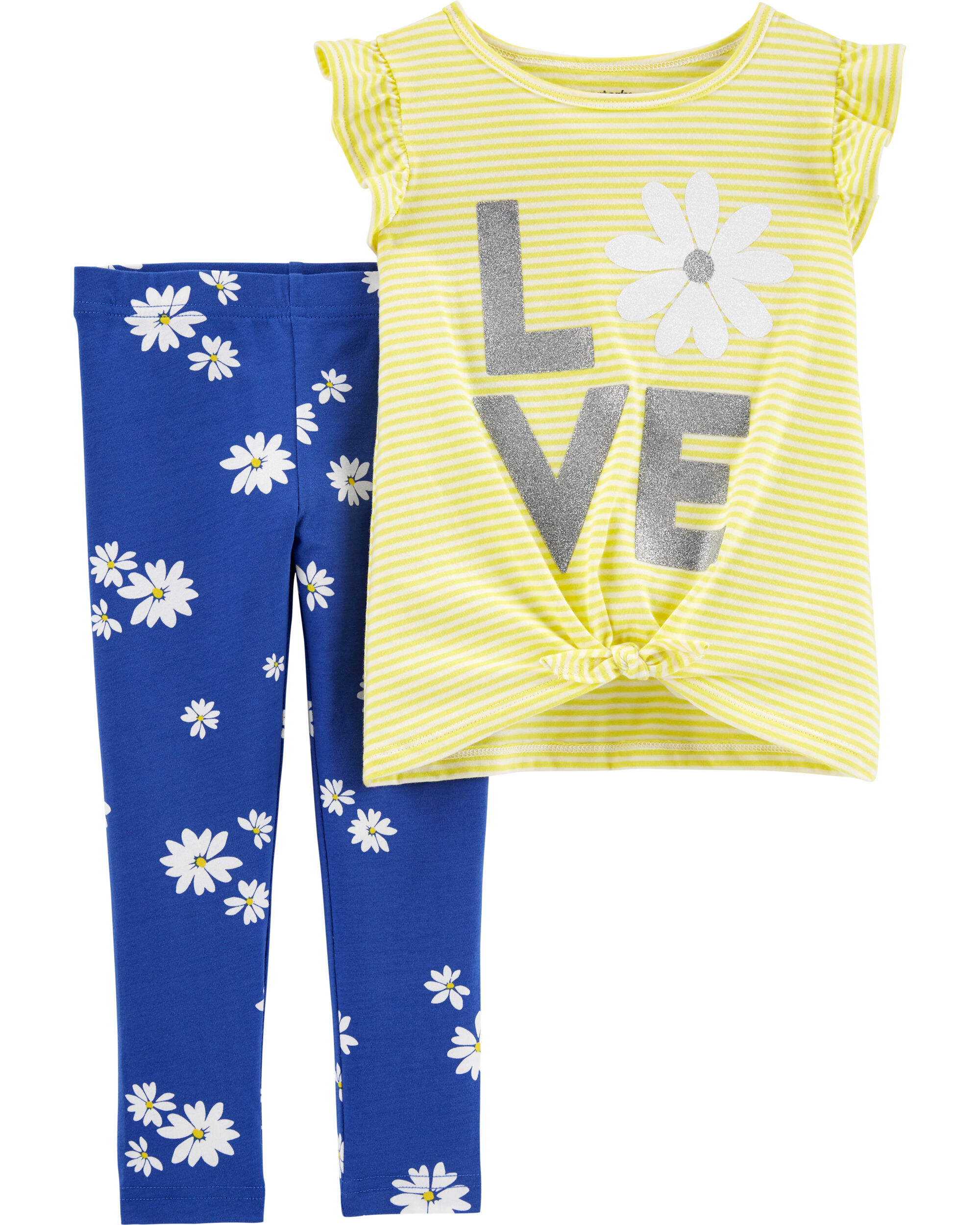 $16.00 фришип $35+ *DOORBUSTER* 2-Piece Love Flutter Tie-Front Tee & Floral Legging Set