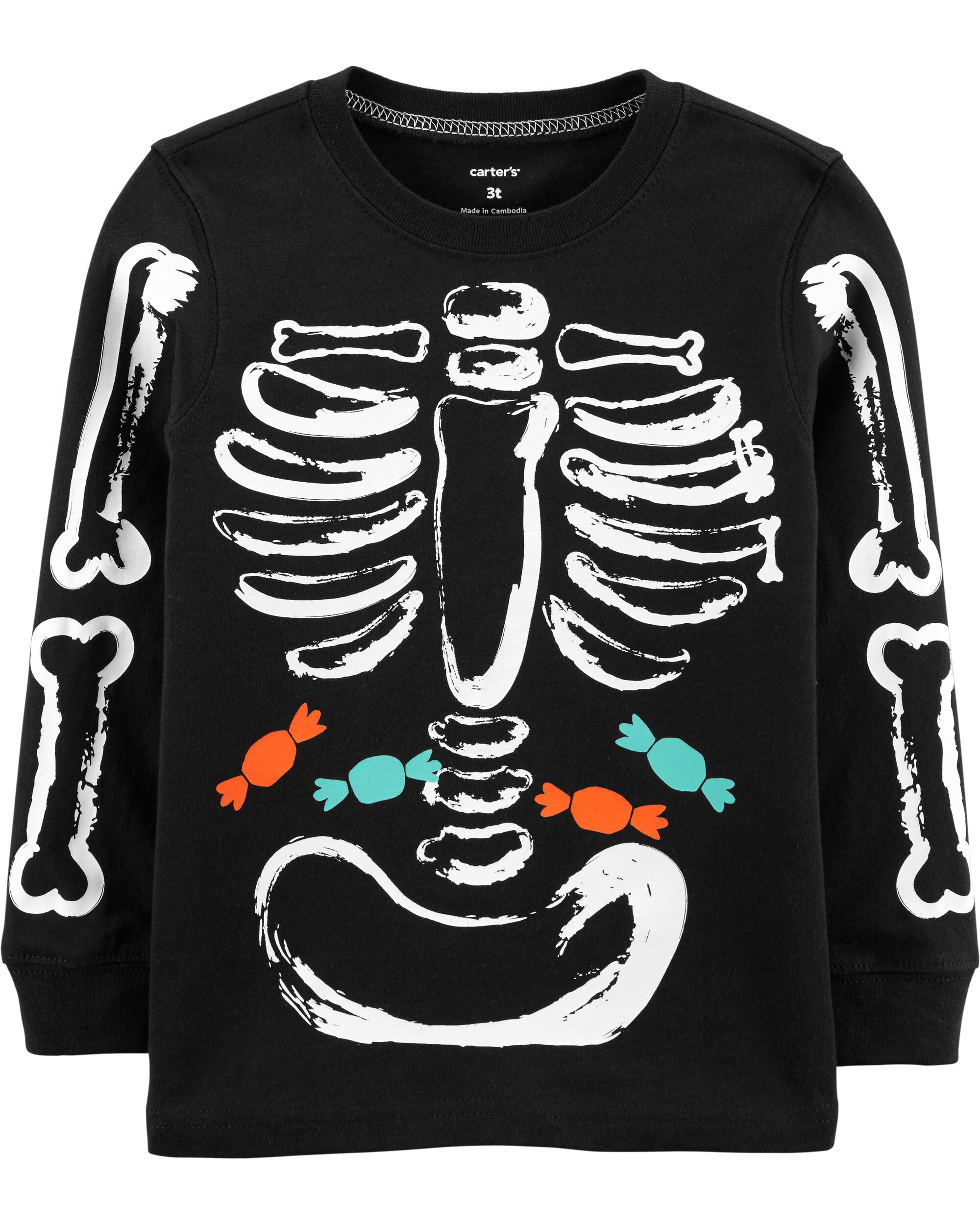 $2.99 фришип $35+ *CLEARANCE* Glow Halloween Skeleton Jersey Tee