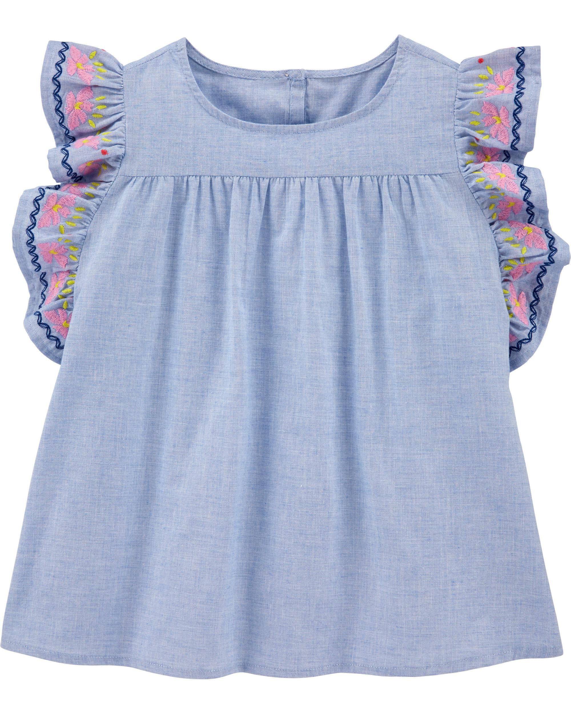$11.99 фришип $35+ *CLEARANCE* 2-Piece Schiffli Button-Front Top & Denim Set