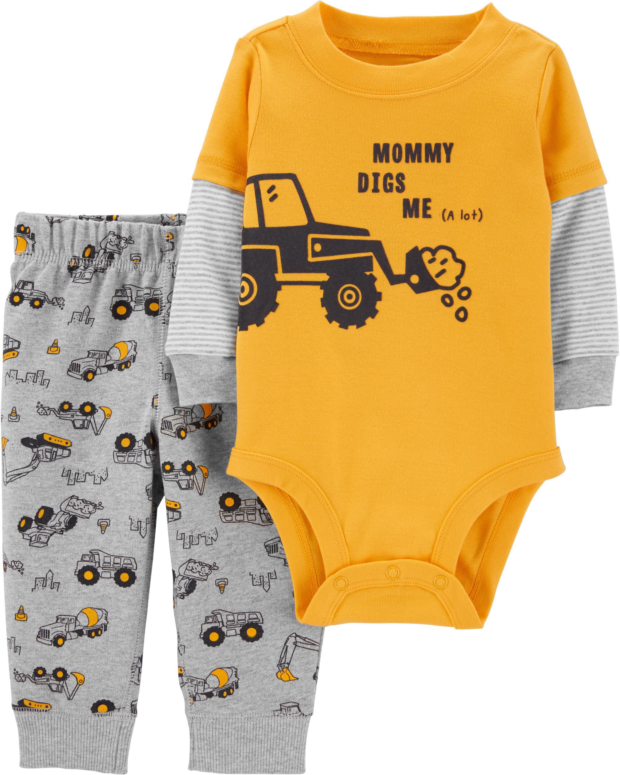 $10.00 фришип $35+ *DOORBUSTER* 2-Piece Tractor Layered-Look Bodysuit Pant Set