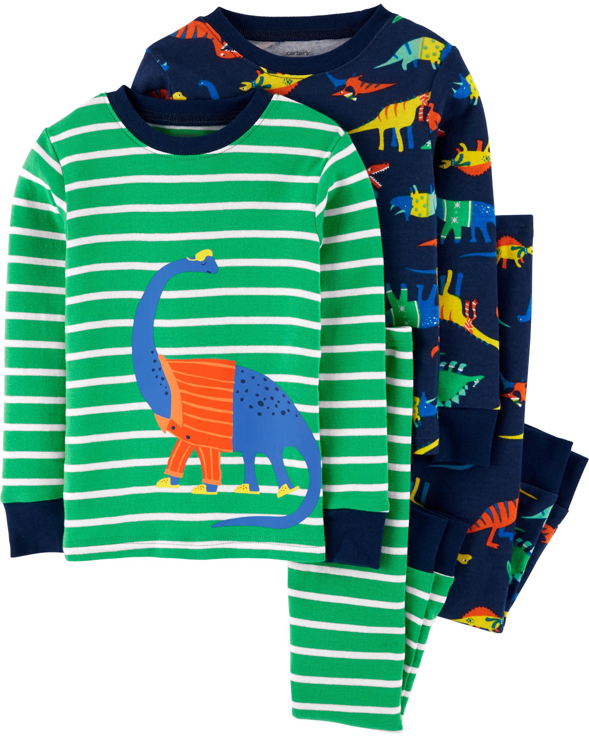 4-Piece Dinosaur Snug Fit Cotton PJs