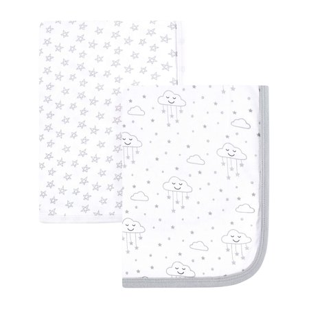 $9.89 = 247 грн. Hudson Baby Boy and Girl Interlock Cotton Blanket, 2-Pack, Gray Clouds