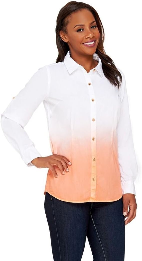$4.99 = 121 грн. Isaac Mizrahi Dip Dye Button Front Woven Shirt A265349, Coral Carnation, S