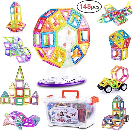 $35.99 = 874 грн. Gifts2U 148 PCS Magnetic Building Blocks for Kids with Storage Box Magnetic Tiles Building Set STEM Preschool Educational Construction Kit Magnet Stacking Toys Gift for Boys and Girls