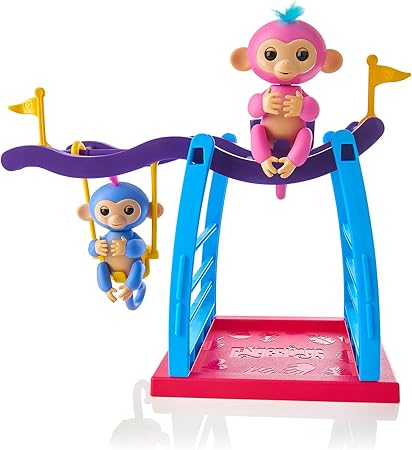 $31.7 = 769 грн. WowWee Playset Bar/Swing Playground with 2 Fingerlings Baby Monkey Toys, Liv (Blue) and Simona (Bubblegum Pink)