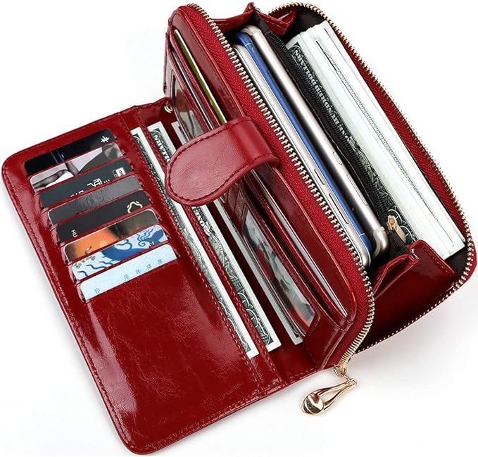 $14.89 = 361 грн. Women Wallet Soft Leather Bifold Clutch Wallet Large Capacity Long Purse with Strap (red)