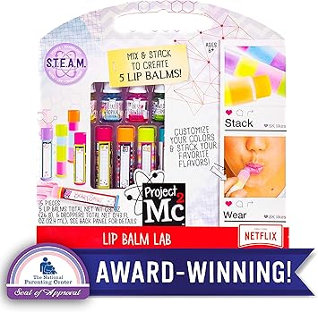 $12.92 = 314 грн. Project Mc2 Create Your Own Lip Balm Lab by Horizon Group USA, DIY STEM Science Kit, Mix & Make Your Own 5 Flavored Lip balms, Multicolored