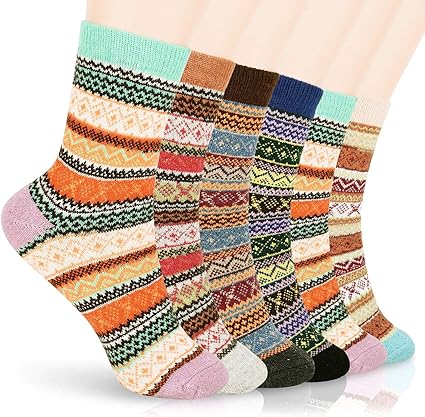 $11.98 = 291 грн. Womens Wool Socks Winter, Homga 6 Pack Womens Winter Soft Warm Thick Knit Wool Vintage Crew Socks Gifts (Multicolor-01)