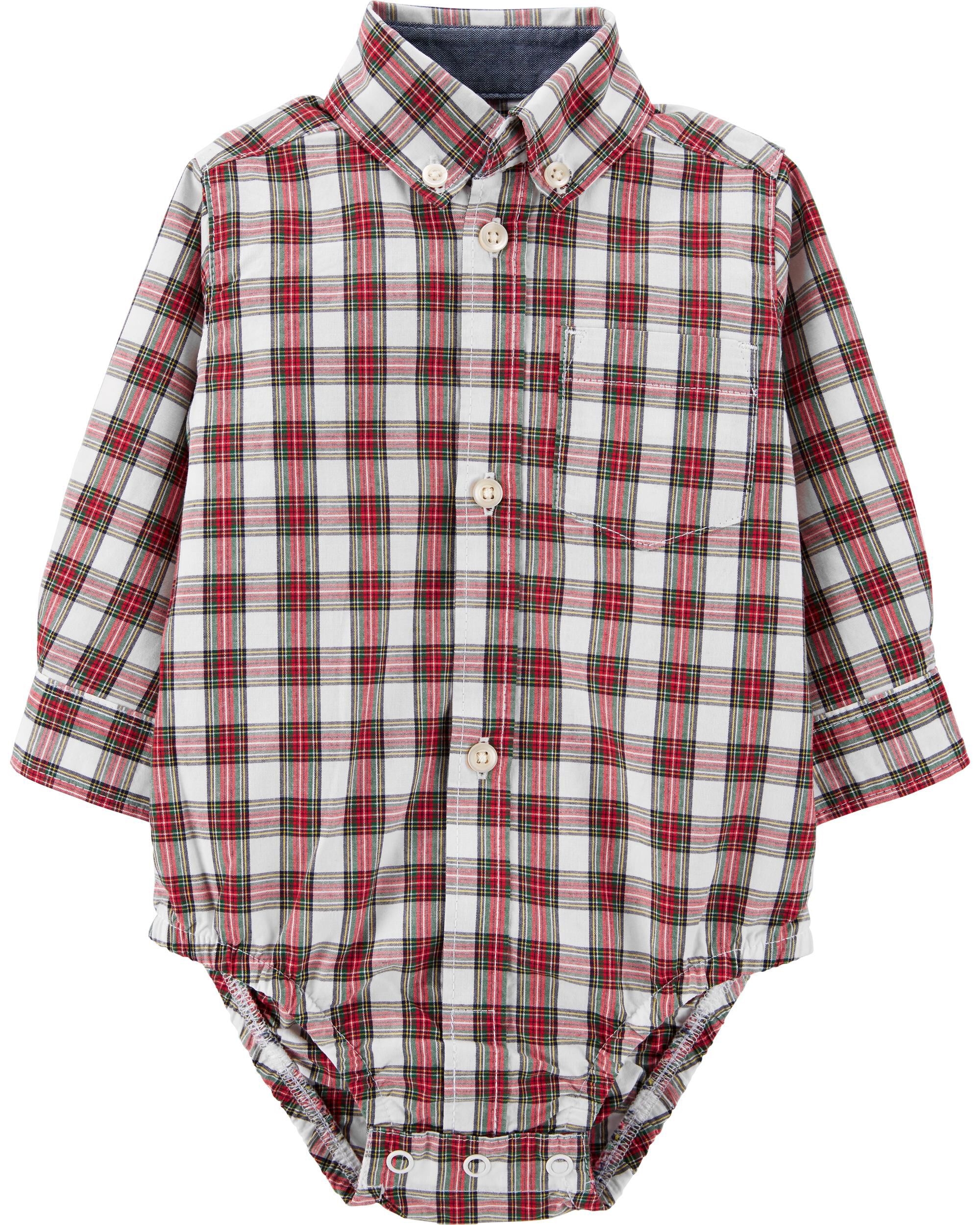 $6.39 фришип $35+ *CLEARANCE* Plaid Button-Front Bodysuit