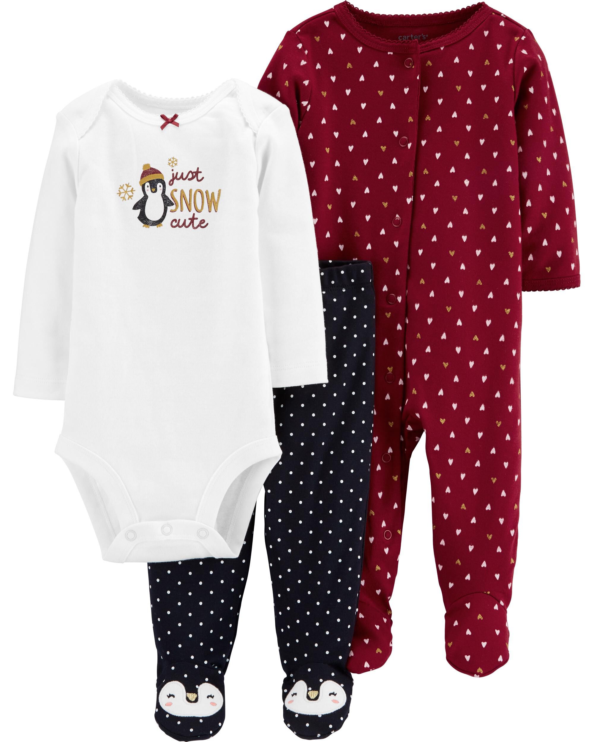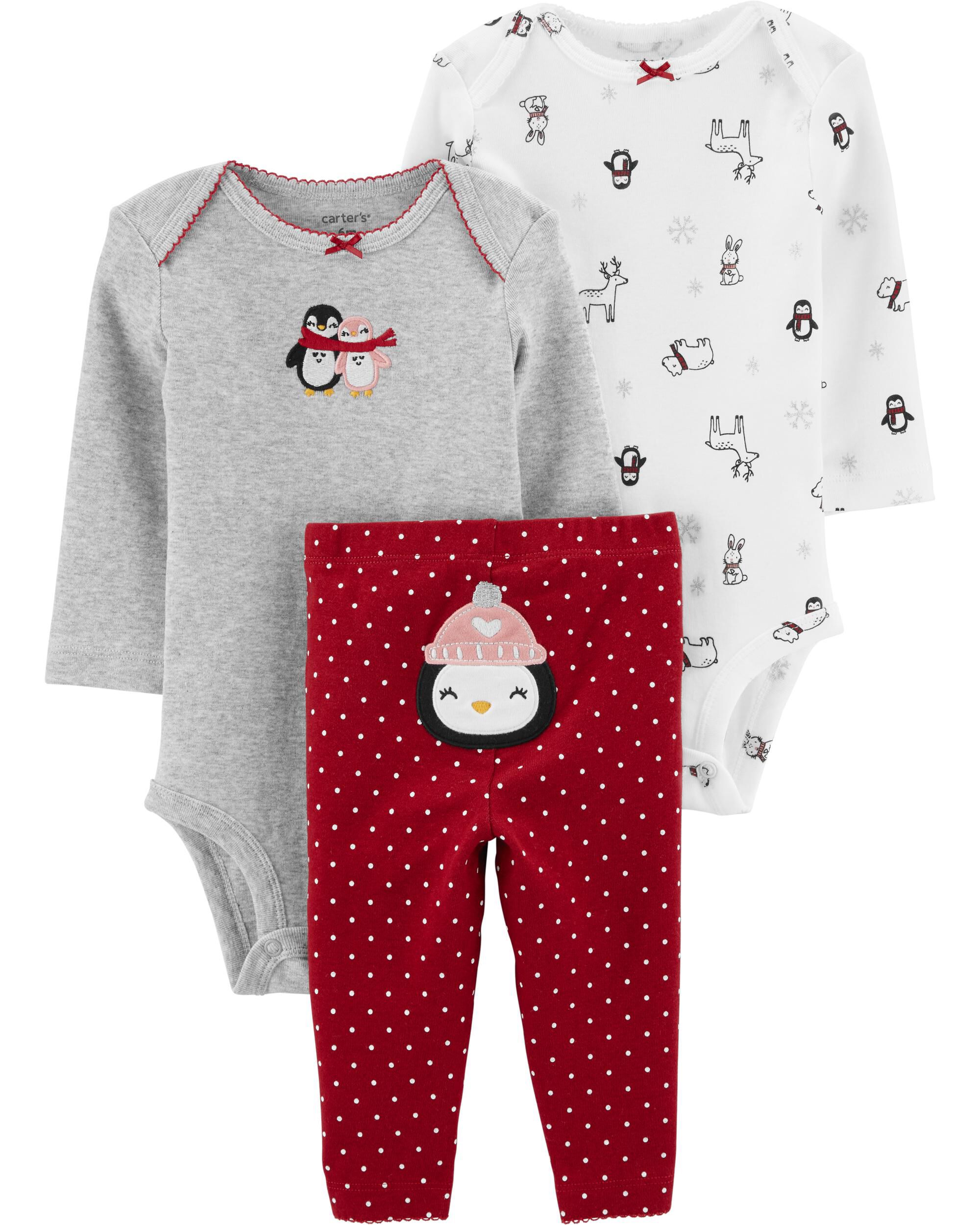 $6.59 фришип $35+ *CLEARANCE* 3-Piece Penguin Bodysuit & Footed Pant Set