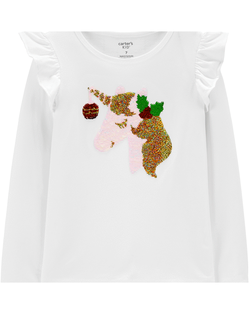 $4.79 фришип $35+ *CLEARANCE* Flip Sequin Holiday Unicorn Jersey Tee