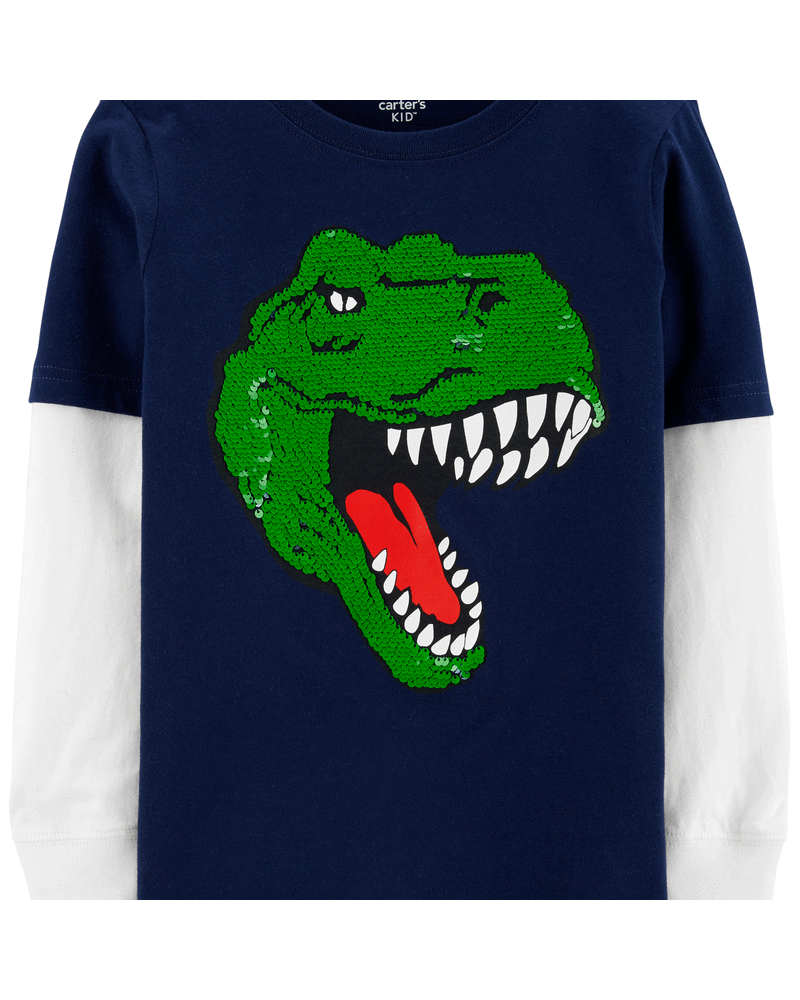 $7.99 фришип $35+ *CLEARANCE* Flip Sequin T-Rex Layered-Look Tee