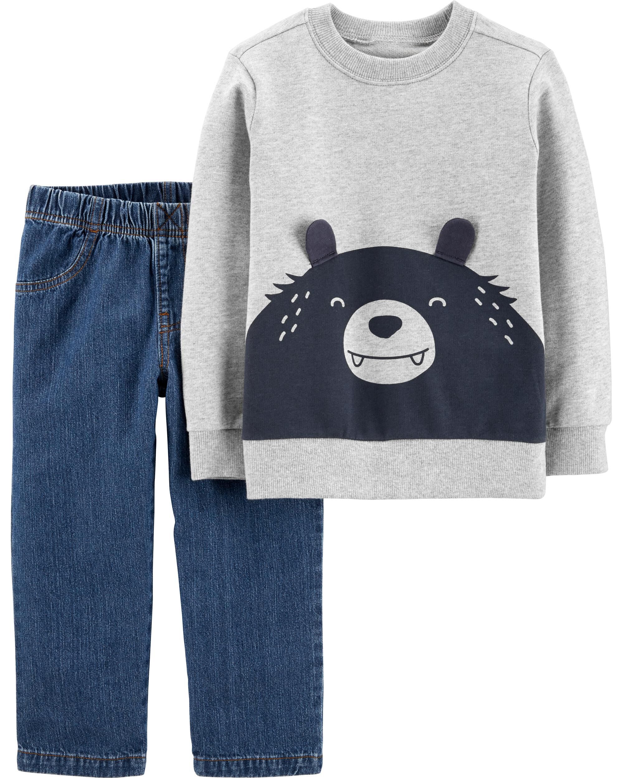 $6.59 фришип $35+ *CLEARANCE* 2-Piece Bear Pullover & Denim Pant Set