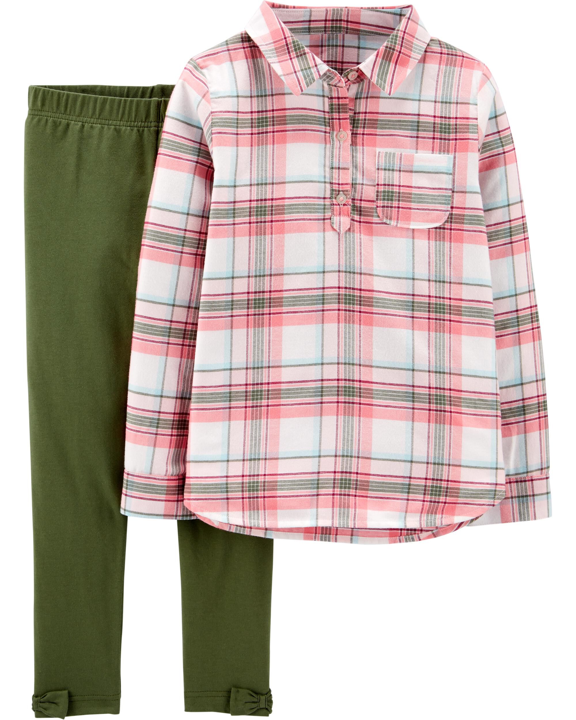 $9.19 фришип $35+ *CLEARANCE* 2-Piece Plaid Twill Top & Legging Set