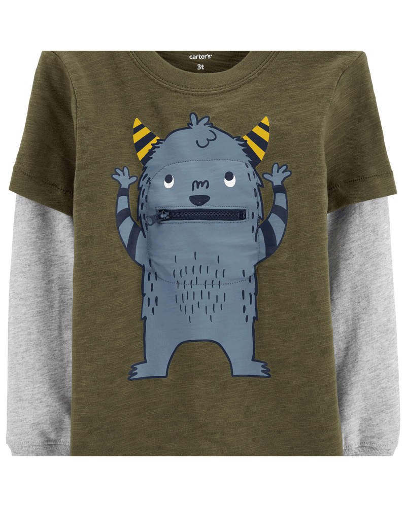 $7.99 фришип $35+ *CLEARANCE* Interactive Monster Layered-Look Slub Tee
