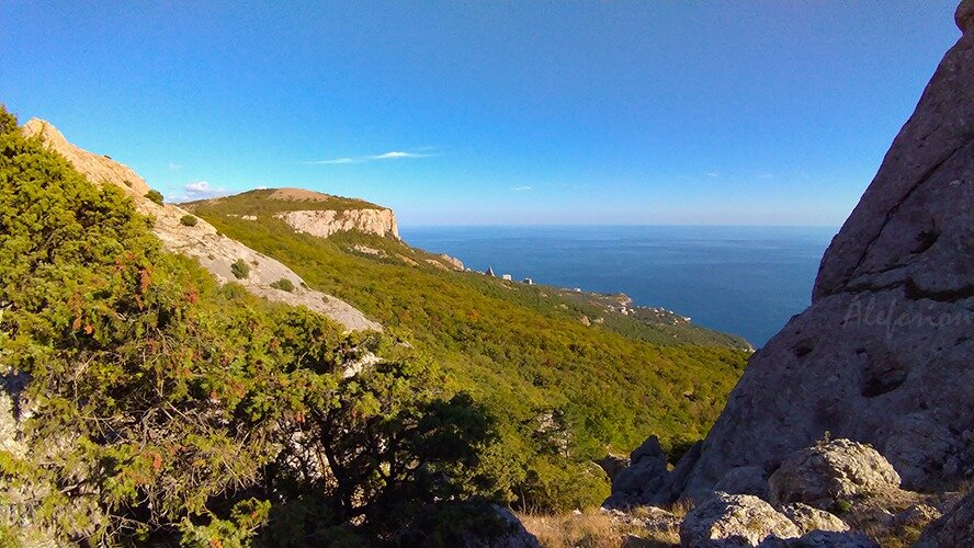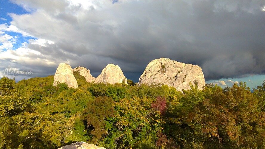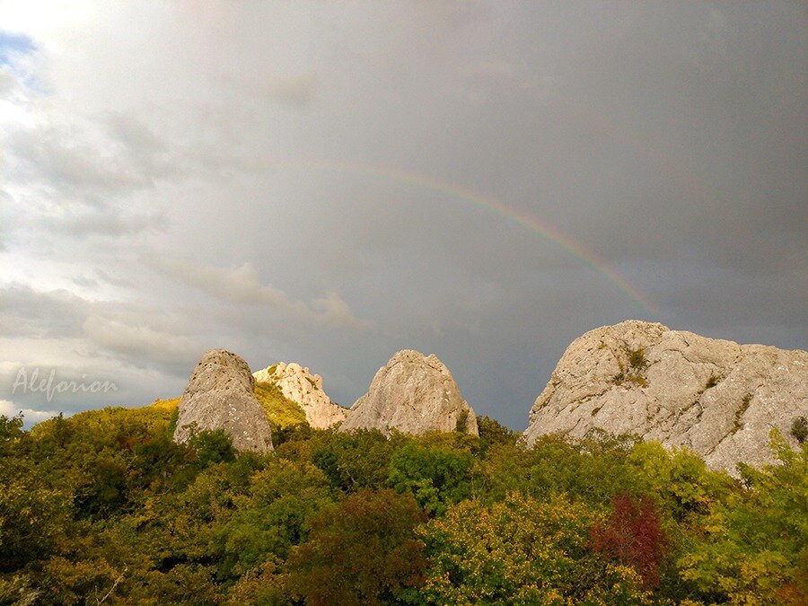 Ненадолго появилась двойная радуга. Прислушавшись к предупреждению, я решила не мокнуть в лесу, так что дождь меня догнал только возле Фороса.