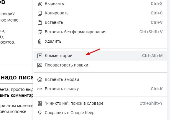 Если ты ведёшь проект или правишь документ клиента, просто выделяешь нужный фрагмент → нажимаешь правой кнопкой → добавить комментарий.