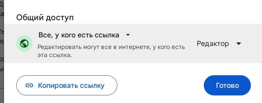 Чтобы предоставить доступ к документу, нажмите «Настройки доступа», выбери «Все, у кого есть ссылка», и дайте права редактора. И отправляем ссылку на документ заказчику.