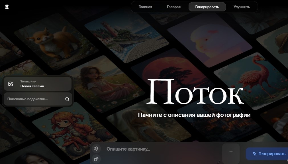 Чтобы начать генерацию изображения, нужно зарегистрироваться либо войти на платформу.